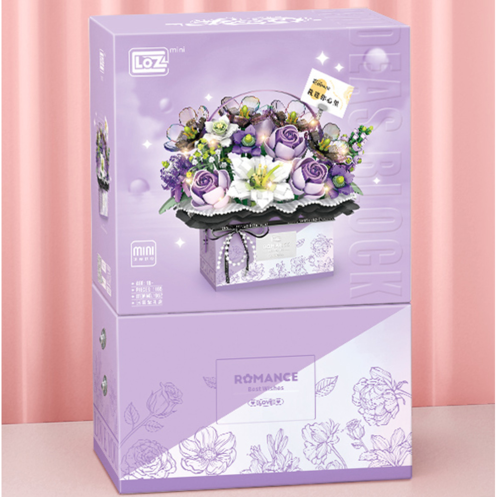LOZ -פרחים בקופסת מתנה- סגול (עם סוללה)